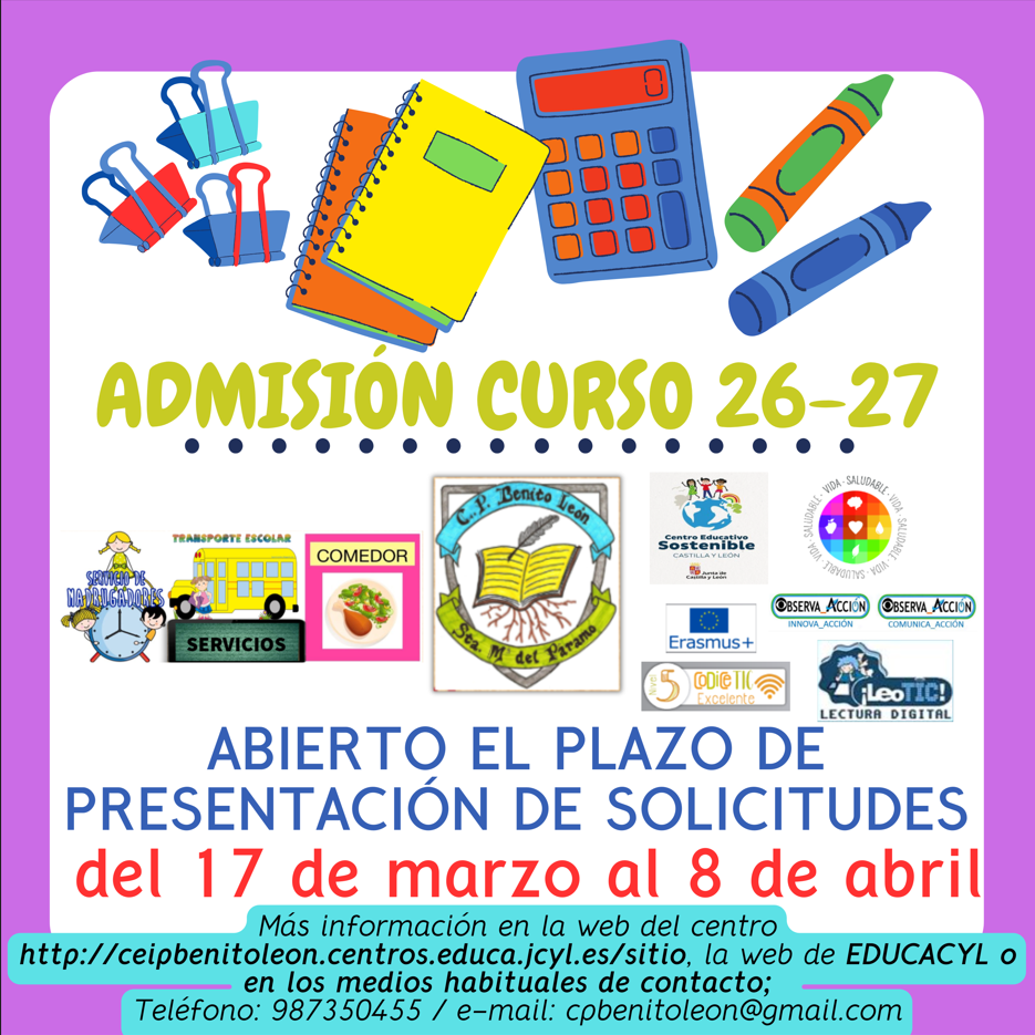 ADMISIÓN SEGUNDO CICLO ED. INFANTIL Y ED. PRIMARIA